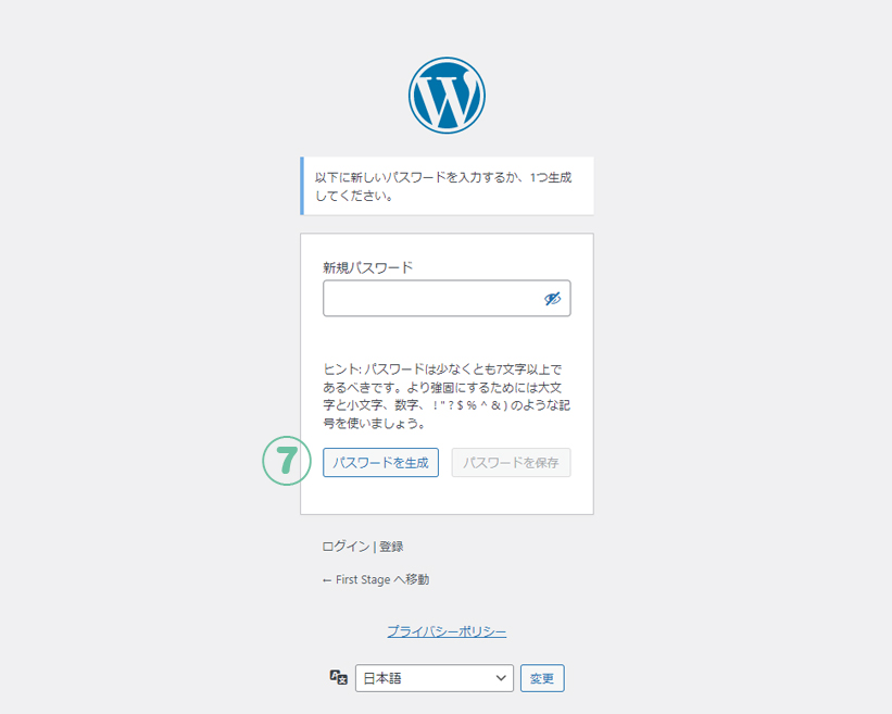 7.⑦のパスワードを生成をクリック。