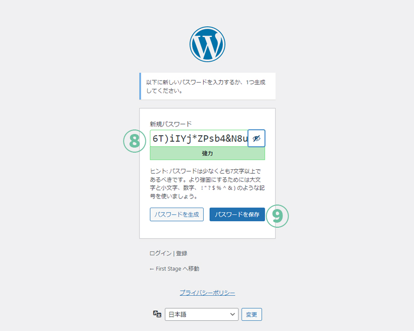 8.⑧に自動でパスワードが表示される。
